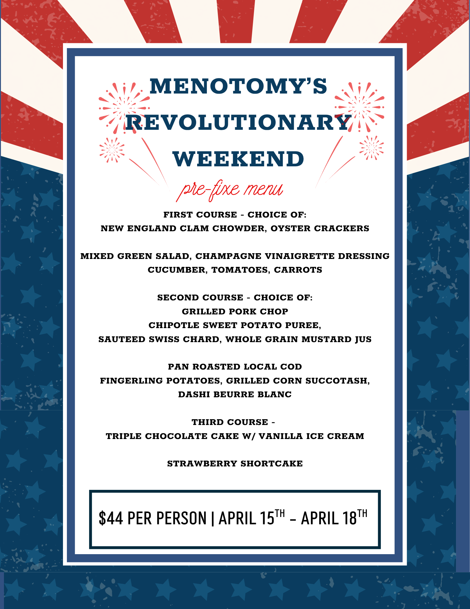 Menotomy Grill & Tavern transports you back to the days of the Minutemen, with a contemporary flair. The name pays homage to the Revolutionary War roots of the Village of Menotomy (now Arlington), by fusing its rich history with the vibe of an urban, neighborhood eatery. Our décor recalls centuries-old motifs, and our menu items reflect the authentic simplicity of a bygone era.